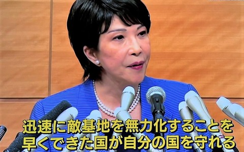 高市早苗「防衛費増額し敵基地を攻撃できるように。先に相手を無力化した方が勝ち」